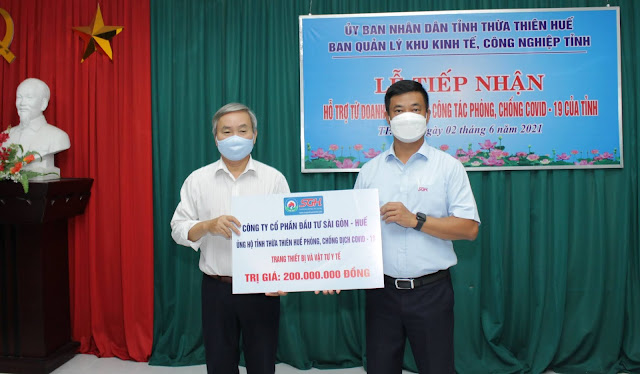 Theo ông Nguyễn Văn Sơn, Phó trưởng Ban Quản lý Khu Kinh tế, Công nghiệp tỉnh TT-Huế, đến đầu tháng 6/2021, có 28 đơn vị, doanh nghiệp thông qua cơ quan này đã ủng hộ tỉnh TT-Huế phòng, chống dịch bệnh COVID-19, với tổng trị giá hơn 1,6 tỷ đồng. Công ty Cổ phần Đầu tư Sài Gòn - Huế (SGH) là doanh nghiệp mới nhất ủng hộ thực hiện công tác này theo kêu gọi hỗ trợ của tỉnh.