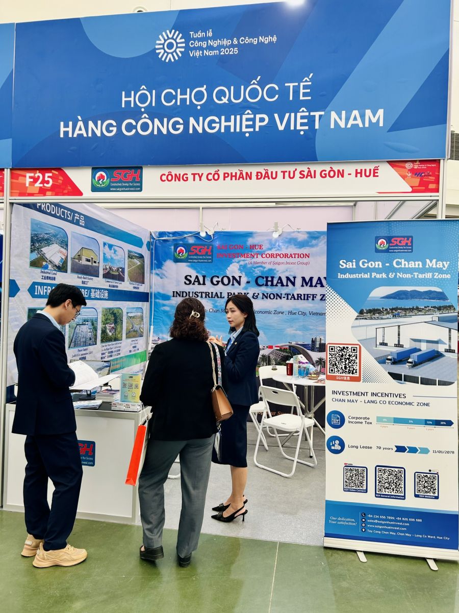 Hướng đến mục tiêu mở rộng mạng lưới kết nối, nắm bắt xu thế phát triển của các ngành công nghiệp thế giới, đồng thời đẩy mạnh hoạt động xúc tiến đầu tư, Công ty Cổ phần Đầu tư Sài Gòn - Huế (SGH) đã tham gia triển lãm với gian hàng giới thiệu dự án trọng điểm: Khu công nghiệp & Khu Phi thuế quan Sài Gòn - Chân Mây.