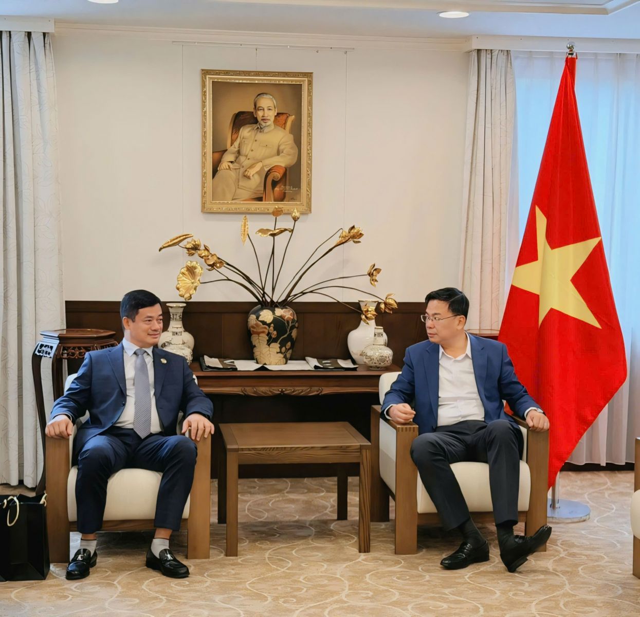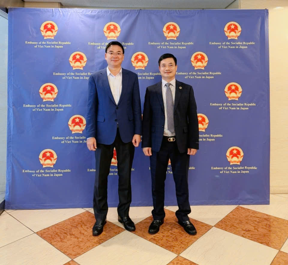 Ông Nguyễn Duy Hưng - Tổng Giám đốc Công ty SGH trao đổi với Ông Phạm Quang Hiệu - Đại sứ đặc mệnh toàn quyền nước CHXHCN Việt Nam tại Nhật Bản về tiềm năng phát triển và thu hút đầu tư Nhật Bản vào KCN & KPTQ Sài Gòn - Chân Mây